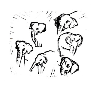 These are the first 3 lino's I've cut and printed based on the sketches from my trip to Chiang Mai, Thailand as part of the group Volunteer Positive. (And one linocut from my friend Phra Kritsada Prueprong) The first 2.5 weeks was spent in service which afforded me very little time to actually draw on my own, most of the prints from the full series were sketched out on my last week in Chiang Mai. The only 1 of these 3 lino's that was sketched during my actual service is the Elephant sketches print. We spent an afternoon at the BAAN CHANG ELEPHANT PARK in Chiang Mai where after a educational introduction to the Asian Elephants in residence we had lunch and a few minutes to digest our food before the 2-hour trek we were about tro partake in. Having not had much opportunity to do any prior sketch work, I had the foresight to bring along a few pieces of pre-cut lino and stole away for 20 minutes after lunch and did these sketches. Let it be known, elephants do not stand still, ever. It was a challenge to get a complete sketch, which explains why there are so many partial elephants in this print.